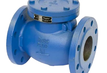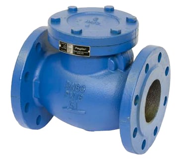 The Pegler type V914 Valves are Cast Iron swing check valves which are intended prevent back flow in sections of pipe work and equipment an provide a long trouble-free service, it is intended to be used in the horizontal position however I can be used in a vertical pipeline. They are used for high velocity liquid services to prevent a change to the direction of flow caused by back flow and are available in sizes DN65 to DN300.